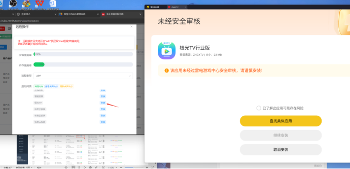 【产品教程】-基础 2025.05.17 XOS综合网关-终端管理-终端卸载和安装APP 1:进到网关选择Al智慧屏,选择对应的终端授权  2、选择在线的终端设备,点击远程可以进到设备的adb远程控制页面,点击对应安装或者卸载按钮即可通过网关adb命令下发到电视终端上对应用进行手动adb安装卸载(注意事项,部分终端adb权限需手动开启才生效,终端不支持adb的无法进行该操作)