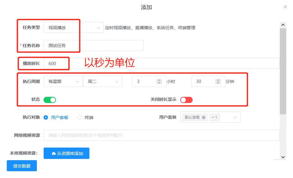 插播业务-一次性视频播放任务