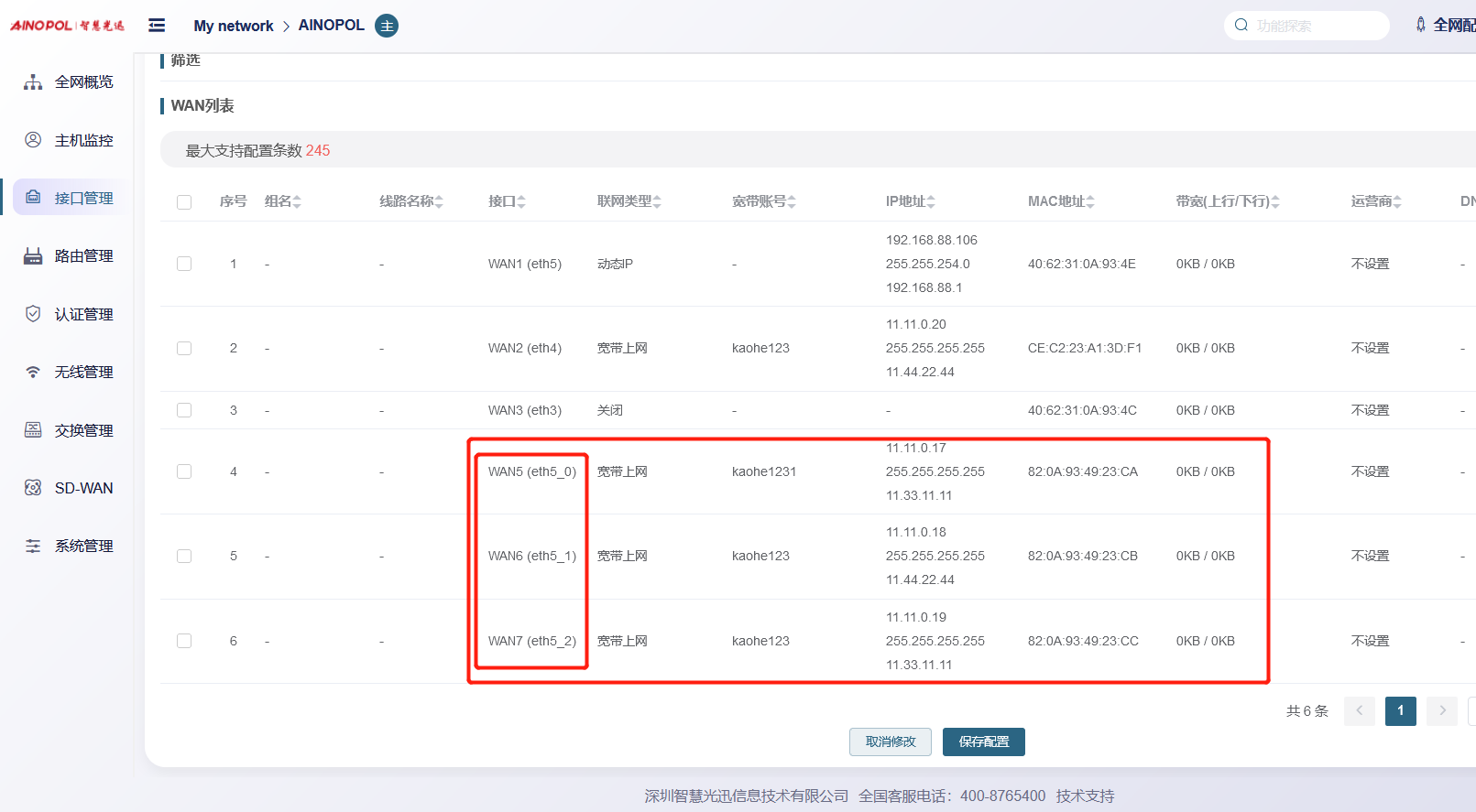 外线设置-WAN口设置
