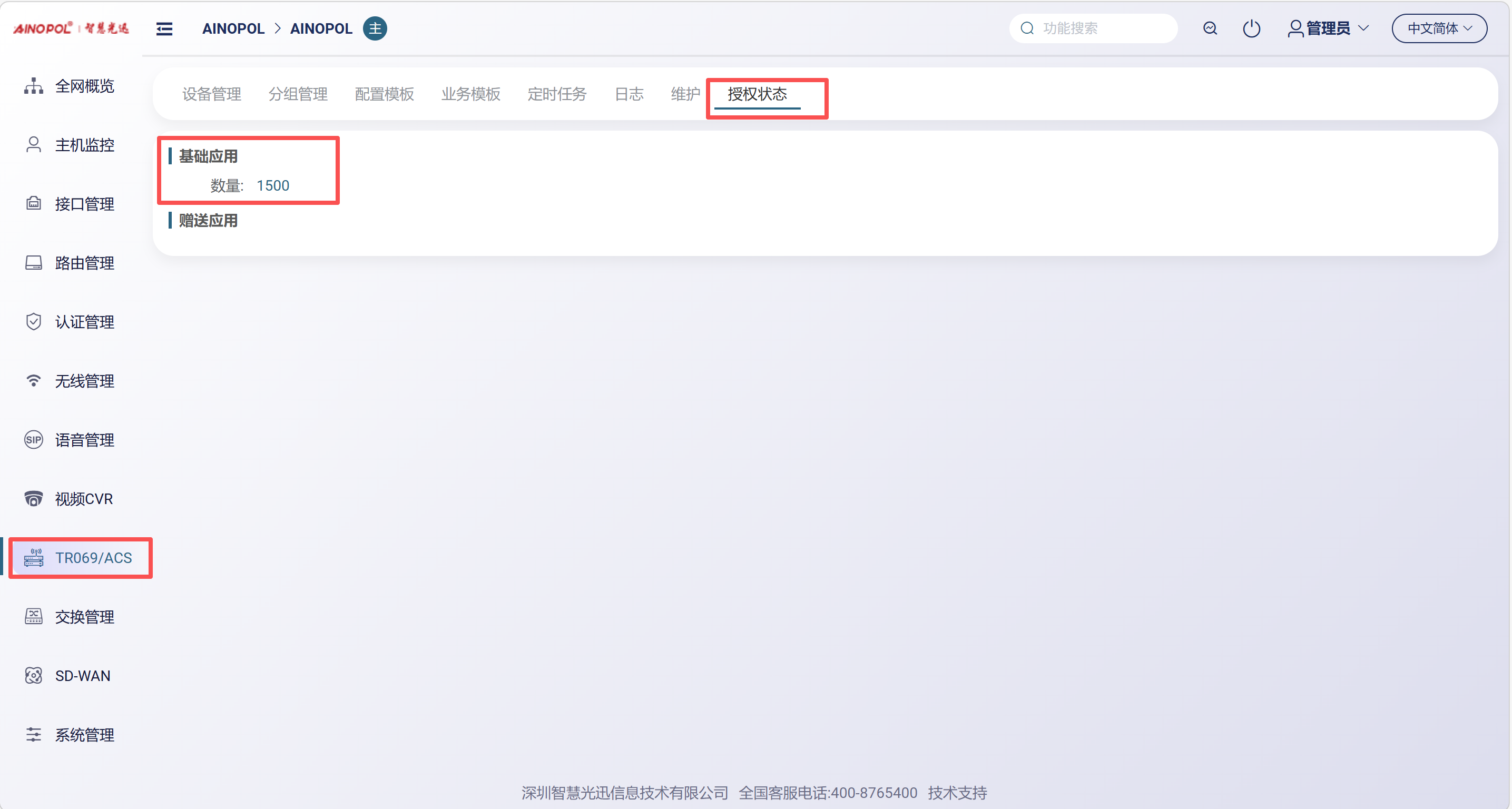 【产品教程】2026.03.24 融合路由-系统管理-应用授权 这里用于兑换 TR069 授权。首先联系业务人员购买授权,业务方会提供一串兑换代码。将该代码复制到此处后,点击“确定”即可完成领取。领取完成后,可在 TR069 授权界面查看是否领取成功。
