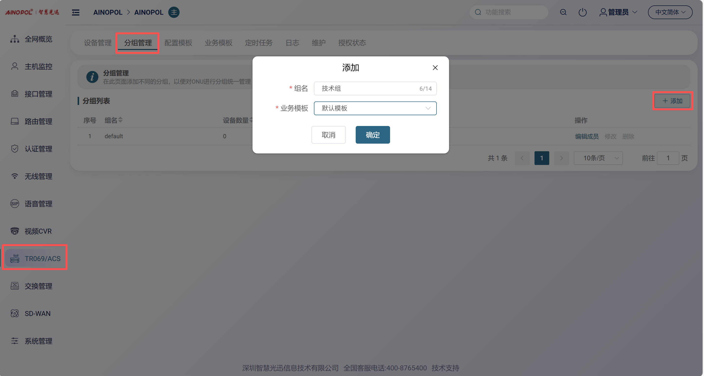 【产品教程】2026.03.25 融合路由-TR069/ACS-分组管理 系统支持创建不同的分组,用于对光猫设备进行分类管理;新上线或被劫持上来的光猫,会自动归入 “默认分组”。  我们可以手动创建不同的分组,而新上线或被劫持的光猫会默认放在默认分组里,如果需要将其放入指定分组进行管理,则需要选中对应光猫手动迁移。  如下图所示,选中对应的光猫后,点击“迁移分组”,即可将光猫移入所需分组进行管理。