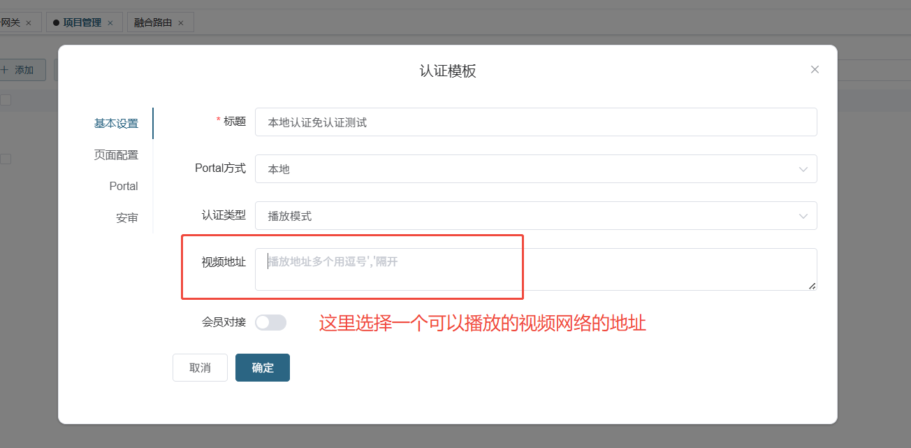 【产品教程】2026.03.27融合路由potal认证-视频播放认证 操作背景:酒店这边希望做pota认证,实现下面的用户上网需要先看完一段完整的视频后才可被放行上网,这个时候,是否看完这段视频就成为了鉴权的标准,那么此时应当如何实现? (1)鉴权通过条件:客户是否看完这段视频 (2)使用场景:酒店,餐厅等公共场所,需要加入宣传等因素的场景 在EAAS上找到对应的项目,选择模板配置-认证模板  这里potal认证方式为本地 认证类型为视频认证  融合路由开启potal开关,进入该项目的路由设备列表中  在EAAS的路由列表里面找到路由,选择更多-认证,将路由的认证配置按钮打开注意:这里没有按照上面的第一步创建认证模板的话,这里的认证按钮是打不开的   开启之后,再次点击更多,认证进去,可以看到有地址出现了这里的Potal网址实际上就是potal服务器的地址  融合路由开启potal认证,设置pota认证针对的网段接口(这里选择vlan100实际项目上可根据项目的实际情况做配置选择)配置完成后,别忘了点击保存配置后生效  在云web认证中,配置相关的放行域名和potal服务器的地址, 抄写Protal地址:云端有显示 抄写域名白名单:固定填写https,web.rh6.cc,sczhgx.com,zhgxtv.oss-cn-shenzhen.aliyuncs.com  致此,就配置完成了 效果演示 用户一定要播放完视频后,才可以正常上网(注:可能会遇到兼容性问题