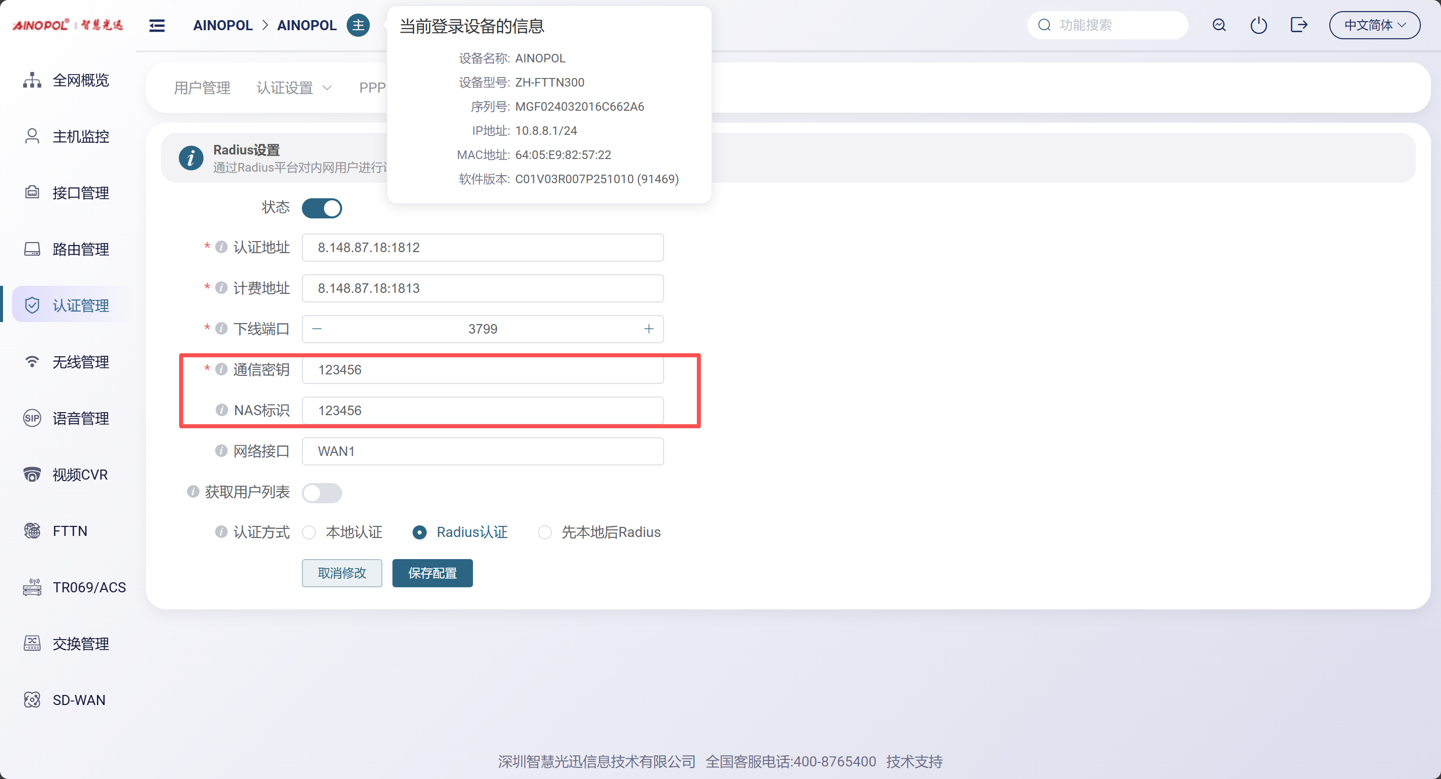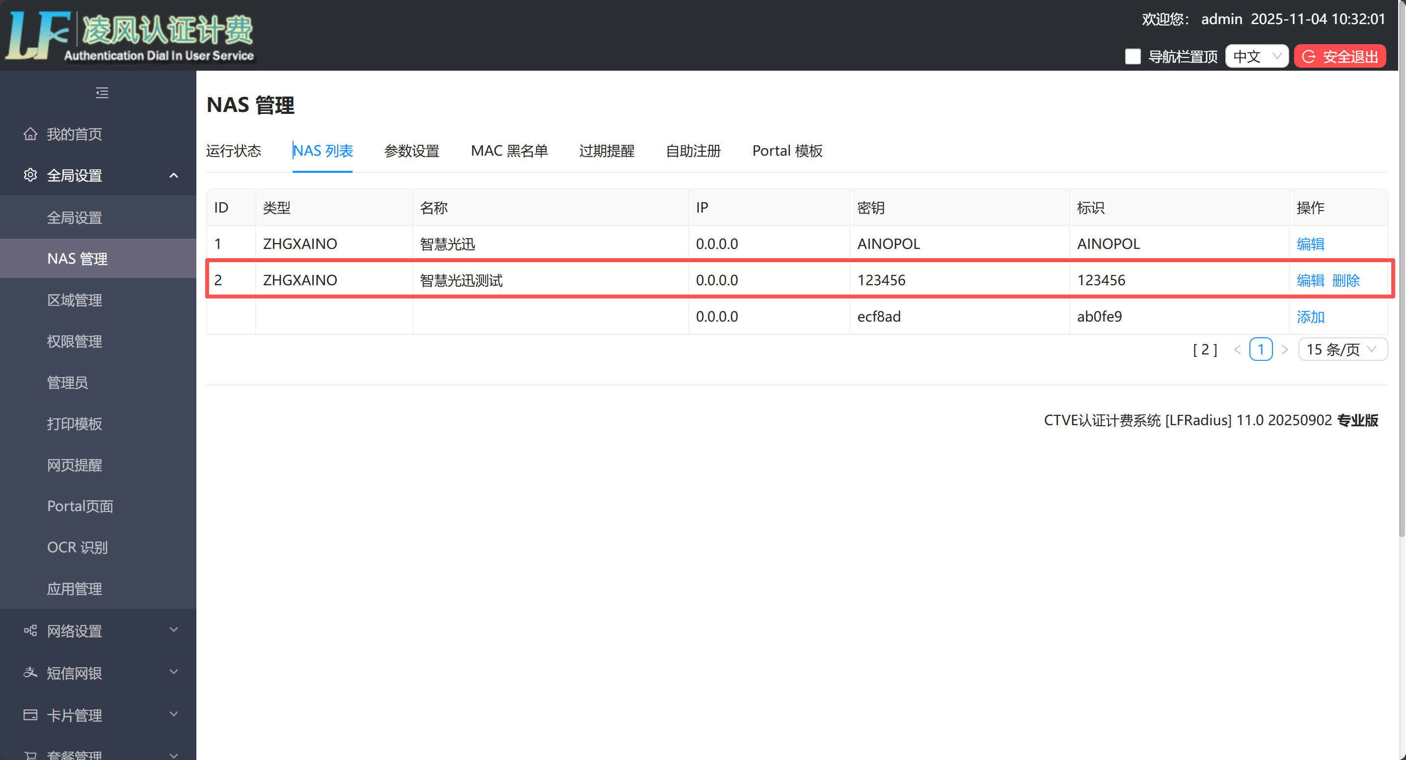 【产品教程】2025.04.11融合路由-Radius设置 以下是对接凌风计费为例 路由的Radius配置里面配置好对应的计费服务器地址、通信密钥、NAS标识(密钥和标识自己配置和计费里面对应就好),网络接口选择外网口,有专线最好用专线   至此,对接计费时路由侧配置已完成,剩下的凌风侧配置可参考凌风计费配置文档进行使用。