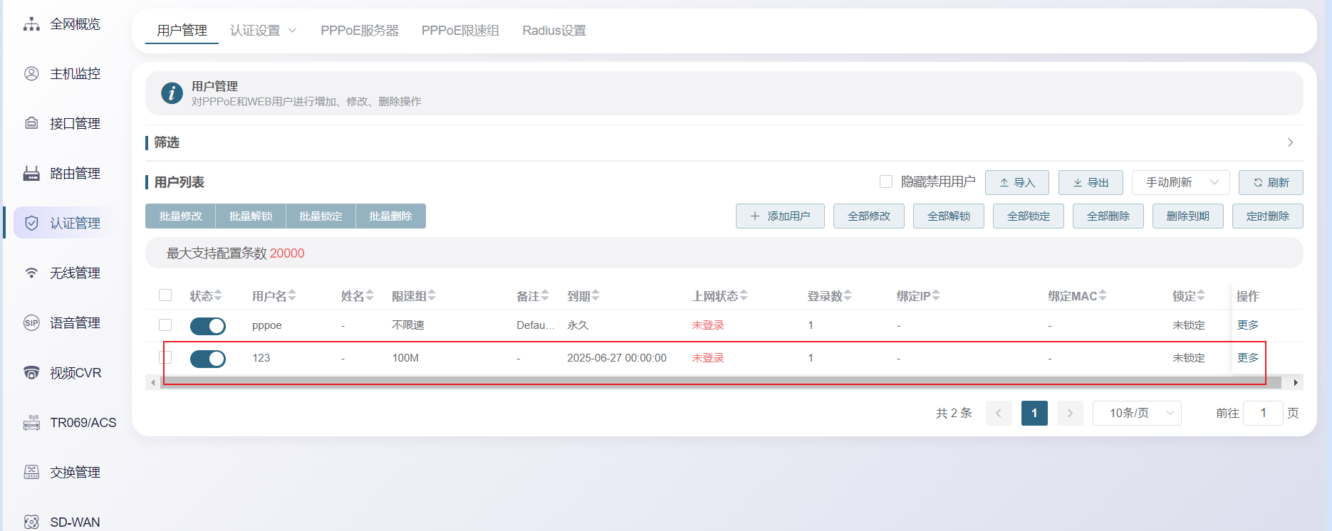 PPPOE SERVER-用户管理