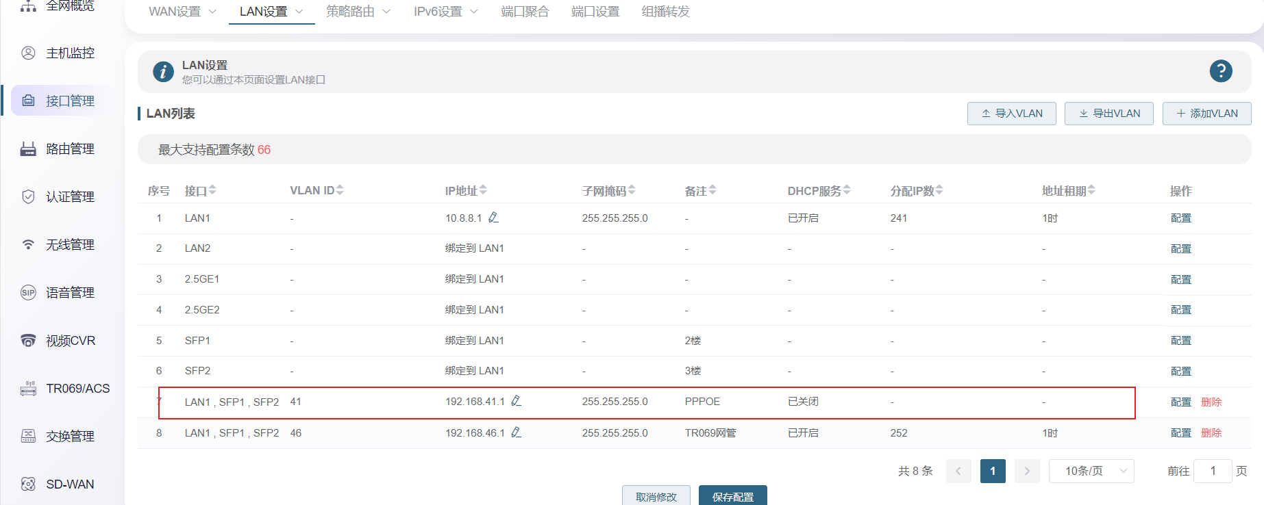 内网设置-基于LAN口创建子接口