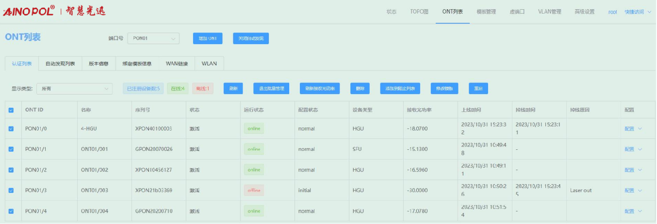 ONT管理-ONT列表