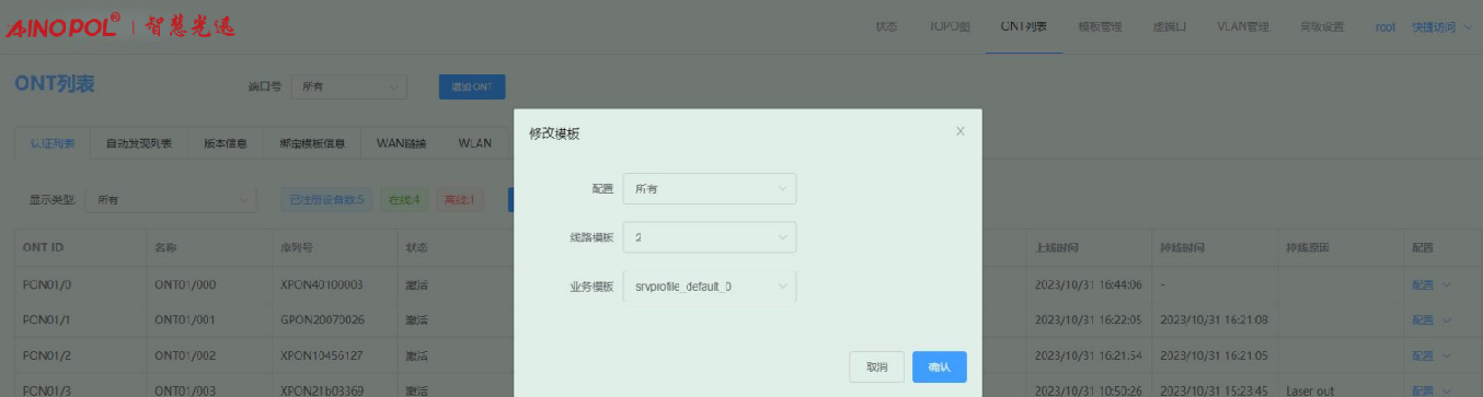 模板管理-线路模板-查看与线路模板绑定的 ONT