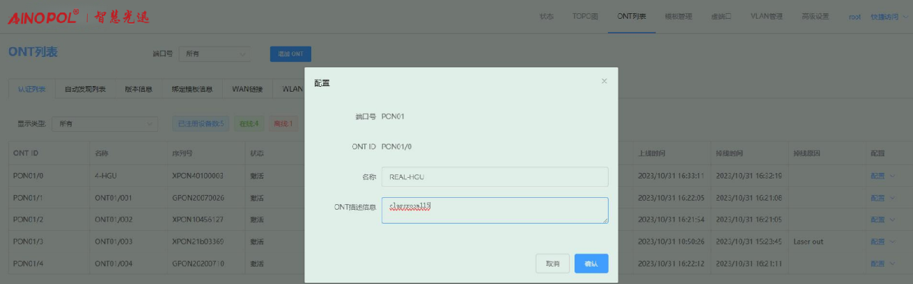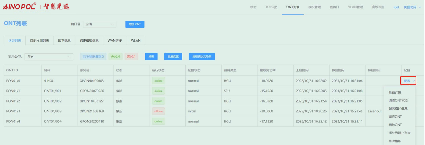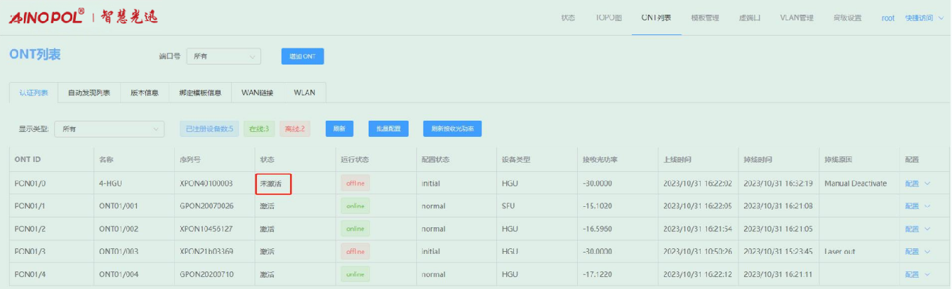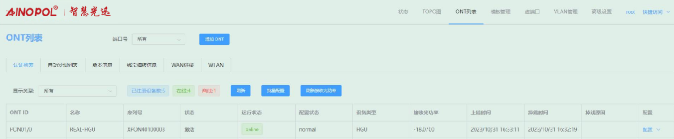ONT管理-ONT列表
