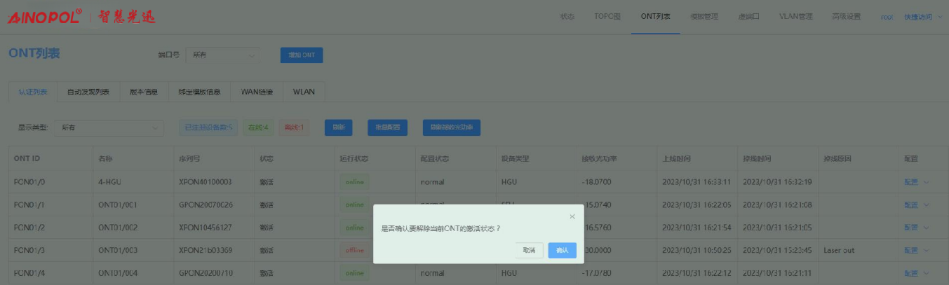 自动发现管理-从自动发现列表删除 ONT