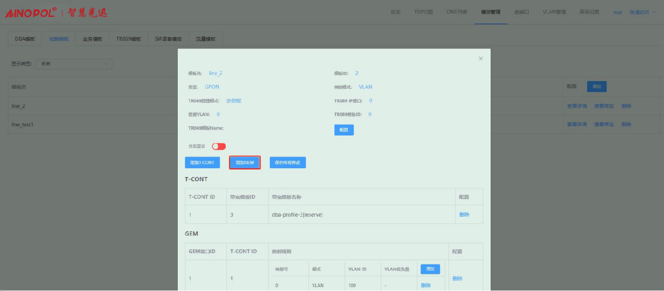 模板管理-线路模板-配置 GEM 和 T-CONT 绑定