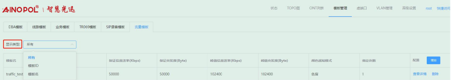 【产品教程】-基础 2026.04.01 盒式GPON 模板管理-流量模板-筛选查看流量模板 进入流量模板页面,可查看所有已创建的流量模板,此外可根据模板 ID 和模板名去筛选查看对应的流量模板。如下图所示: