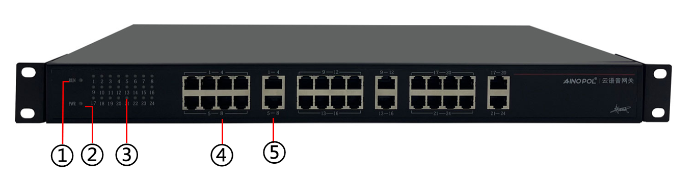 落地网关硬件说明 设备型号:1U 19寸机架式IAD 24个模拟电话接口(FXS端口) 2个网口 功耗<28瓦 电源:90-264V AC 产品尺寸:509\*313\*93mm 产品重量:2.98kg 工作温度:0℃~50℃ 产品外观及硬件规格说明:  图1 ZH-IAD24S产品正面  图2 ZH-IAD24S产品背面 1、接口说明  ①:RUN指示灯:系统运行指示灯 ②:PWR指示灯:设备电源指示灯 ③:接口指示灯:设备接口指示灯 ④:RJ11接口:为内网用户提供模拟用户接口(FXS) ⑤:RJ45接口:为内网用户提供模拟用户接口(FXS),此端口为分线方式。1-4端口(RJ45)对应前4个RJ11接口。  ⑥:LAN1口:设备上联口 ⑦:LAN2口:固定管理口,默认地址:172.16.99.1 ⑧:CONSOLE接口:是一种典型的配置接口,用于服务器后台命令行管理。通过使用Console线直接连接至计算机的串口。 ⑨:RST键:复位键 ⑩:RUN指示灯:系统运行指示灯。PWR指示灯:设备电源指示灯 ⑪:接地 ⑫:电源开关 ⑬:电源:AC 100-240V