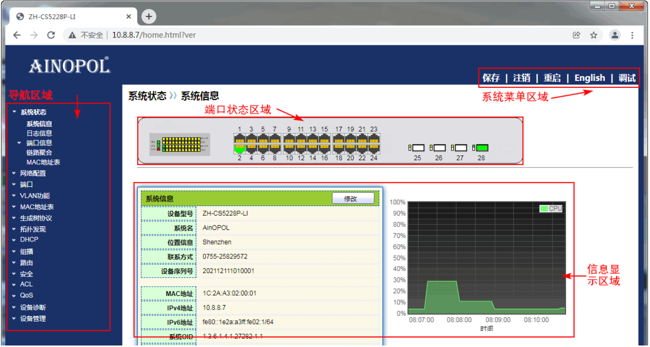 【产品教程】2026.04.15 盒式交换机(千兆)WEB登录-客户端界面组成 Web 网管系统的典型操作界面的介绍,如下图所示。