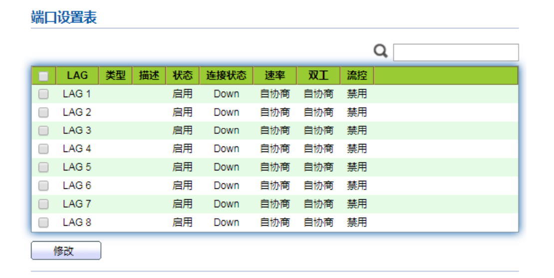 【产品教程】2026.04.15 盒式交换机(千兆)端口设置-聚合口端口设置 聚合组成员端口的属性配置 操作步骤: 1、单击导航树中的“端口 > 链路聚合 > 端口设置”菜单进入界面,如下图所示: