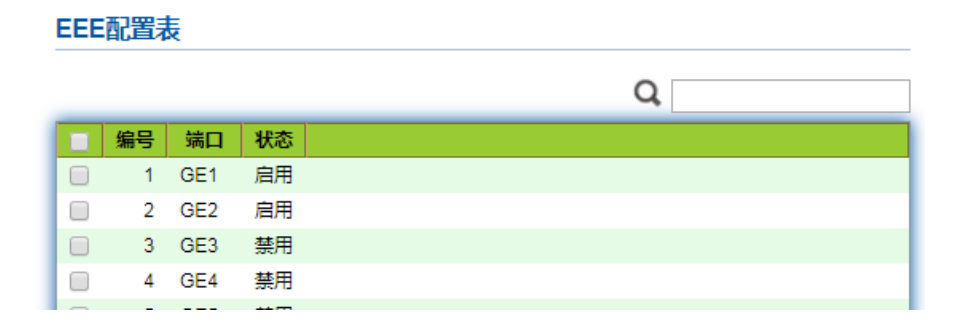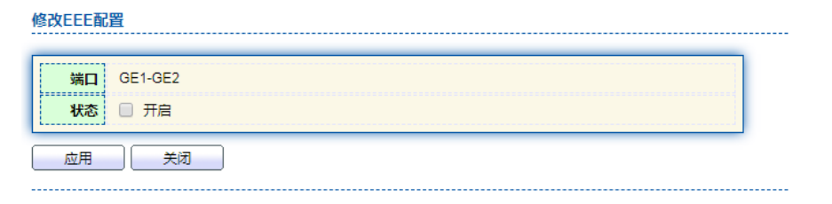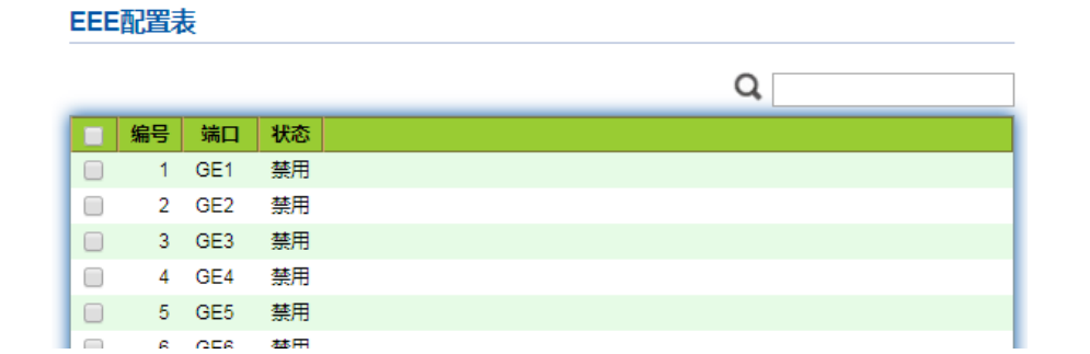 【产品教程】2026.04.15 盒式交换机(千兆)端口设置- EEE 配置 如果流量为零或更少,端口功率将被调低 操作步骤: 1、单击导航树中的“端口 > EEE 配置”菜单进入界面,如下图所示:  2、选择端口列表,然后点击“修改”,进行 EEE 开关配置,发下图所示: