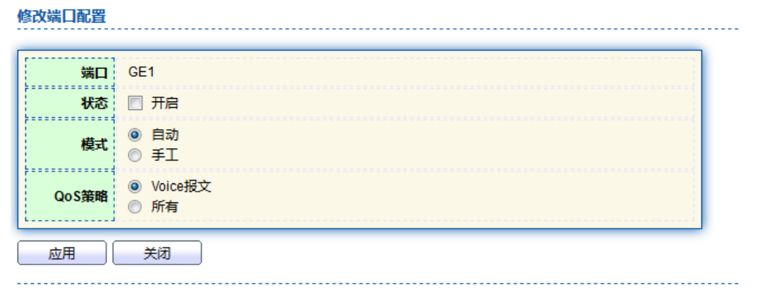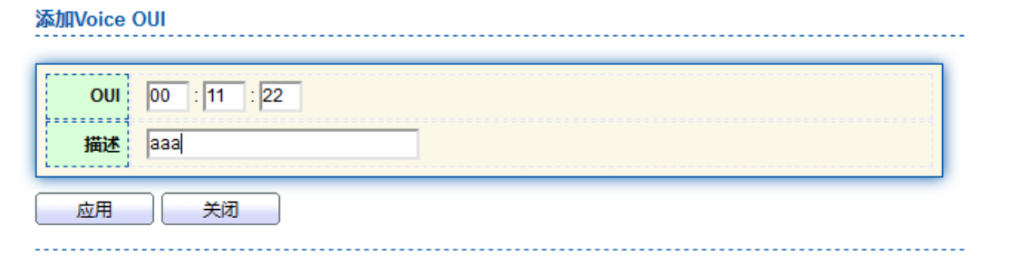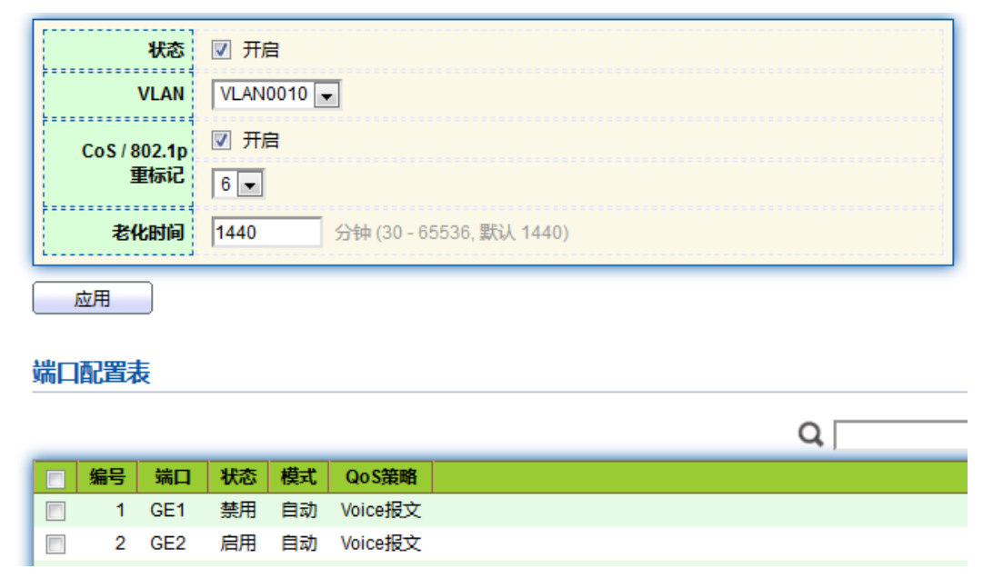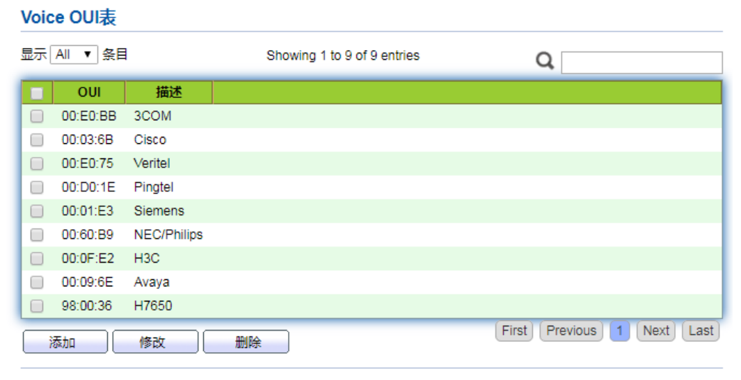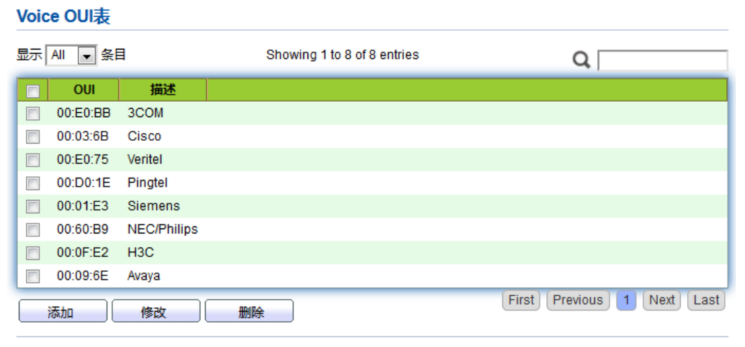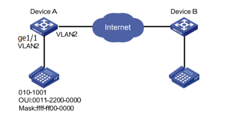 【产品教程】2026.04.15 盒式交换机(千兆)VLAN设置-Voice VLAN 提高语音数据传输优先级的传统处理方法是使用 ACL(Access Control List)对语音数据进行区分,并使用 QoS(Quality of Service)保证传输质量。为简化用户配置,更方便的管理语音流的传输,提出了 Voice VLAN 特性。使能 Voice VLAN 功能的接口根据进入接口的数据流中的源 MAC 地址字段来判断该数据流是否为语音数据流。源 MAC 地址符合系统设置的语音设备 OUI(Organizationally Unique Identifier)地址的报文认为是语音数据流。接收到语音数据流的接口将自动加入 Voice VLAN 中传输。从而简化了用户配置,实现了用户方便管理语音数据。 Voice VLAN 的 OUI 地址:OUI 地址表示一个 MAC 地址段。将 48 位的 MAC 地址和掩码的对应位作与运算可以确定 OUI 地址。接入设备的 MAC 地址和 OUI 地址匹配的位数,由掩码中全“1”的长度决定。例如,MAC 地址为 1–1–1,掩码为 FFFF-FF00-0000,那么将MAC 地址与其相应掩码位执行与运算的结果就是 OUI 地址 0001-0000-0000。只要接入设备的 MAC 地址前 24 位和 OUI 地址的前 24 位匹配,那么使能 Voice VLAN 功能的接口将认为此数据流是语音数据流,接入的设备是语音设备。 Voice VLAN 是为用户的语音数据流划分的 VLAN。用户通过创建 Voice VLAN 并将连接语音设备的接口加入到 Voice VLAN 中,使语音数据流集中在 Voice VLAN 中进行传输。网络中经常同时存在语音数据和非语音数据两种流量。语音数据在传输时需要具有比其他业务数据更高的优先级,以减少传输过程中可能产生的时延和丢包现象。 1、单击导航树中的“VLAN 功能 > Voice VLAN > 功能配置”菜单,进入语音 VLAN 的配置界面,如下图所示。     2、单击导航树中的“VLAN 功能 > Voice VLAN > Voice OUI 配置”菜单,进入语音 VLAN的 OUI 地址表配置界面,在此页面配置 Voice VLAN 的 OUI 地址段,如下图所示。  3、填写相应的配置项,单击“应用”,完成配置,如下图所示。  下面举个例子来说明,通过配置手动模式下的 Voice VLAN,使接入 IP 电话的端口通过人为控制加入/退出 Voice VLAN,并将语音流在该 VLAN 内传输。创建 VLAN2 为 VoiceVLAN,使其工作在 Voice VLAN 安全模式,只允许语音数据通过。IP 电话发送 UNTAG 语音流,接入端口是 Trunk 类型端口 GE1。用户需要设置一个自定义的 OUI 地址 0011-2231-05e1。配置自动模式下的 Voice VLAN 的组网图  操作步骤: 1、创建 VLAN,确定员工所属的 VLAN。单击导航树中的“VLAN 功能 > VLAN 配置 > 创建 VLAN”菜单,选择 VLAN2,向右添加到创建 VLAN 列表,点击应用生效:  2、配置 SwitchA 以太网接口 GE1 为 Trunk 模式。单击导航树中的“VLAN 功能 > VLAN 配置 > 端口配置”菜单,选择 GE1,点击修改,选择端口模式为 Trunk  3、单击导航树中的“VLAN 功能 > Voice VLAN > Voice OUI 配置”菜单,配置 OUI MAC 地址范围,点击添加,输入语音设备的 MAC 地址前 24 位:00:11:22,单击“应用”,完成配置,如下图所示:  4、开启端口 GE1 的 Voice VLAN 功能。单击导航树中的“VLAN 功能 > Voice VLAN > 功能配置”菜单,全局配置点击开启,选择 VLAN2,点击应用。再端口配置列表中选择端口 GE1,点击修改,选择开启,模式配置为自动即可,点击应用,结果如下图:  注意: ⚫ 不需要配置端口在 VLAN2 内,开启端口的 Voice VLAN 自动模式,端口会自动转发Voice VLAN 报文。