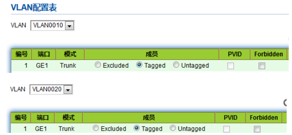 【产品教程】2026.04.15 盒式交换机(千兆)VLAN设置-协议 VLAN 配置 基于协议类型划分 VLAN,其原理是根据接口接收到的报文所属的协议(族)类型及封装格式来给报文分配不同的 VLAN ID。 网络管理员需要配置以太网帧中的协议域和 VLAN ID 的映射关系表,如果收到的是untagged(不带 VLAN 标签)帧,则依据该表添加 VLAN ID。优点是:基于协议划分 VLAN,将网络中提供的服务类型与 VLAN 相绑定,方便管理和维护。缺点是:需要对网络中所有的协议类型和 VLAN ID 的映射关系表进行初始配置。需要分析各种协议的地址格式并进行相应的转换,消耗交换机较多的资源,速度上稍具劣势。 操作步骤: 1、单击导航树中的“VLAN 功能 > 协议 VLAN 配置 > 协议组配置”菜单,进入协议 VLAN组配置界面,如下图所示。   2、填写相应的配置项,单击“应用”,完成配置。  3、单击导航树中的“VLAN 功能 > 协议 VLAN 配置 > 协议组绑定”菜单,绑定配置的协议号、端口号、VLANID,使协议 VLAN 配置生效,如下图:  说明: 设置匹配协议 IPv4 与 IPv6,需要同时匹配设置 ARP 协议。下面举个例子来说明,如下图 PC1 与 PC3 之间可以互访,通信协议采用 IPv4,将 IPv4 协议绑定到 VLAN10 中。PC2 与 PC4 之间可以互访,通信协议采用 IPv6,将 IPv6 协议绑定到VLAN20 中。 操作步骤: 1、创建 VLAN,确定员工所属的 VLAN。单击导航树中的“VLAN 功能 > VLAN 配置 > 创建 VLAN”菜单,选择 VLAN10、VLAN20,向右添加到创建 VLAN 列表,点击应用生效:  2、配置 SwitchA 以太网接口 GE2 与 GE3 为 Hybrid 模式。单击导航树中的“VLAN 功能 >VLAN 配置 > 端口配置”菜单,选择 GE2、GE3,点击修改,选择端口模式为 Hybrid:  3、配置 GE2 端口 Untagged 加入 VLAN10,GE3 端口 Untagged 加入 VLAN20。单击导航树中的“VLAN 功能 > VLAN 配置 > 设置 VLAN”菜单,下拉框中选择 VLAN10,再选择 GE2为 Untagged 端口。相同配置,将 GE3 加入 VLAN20 的 Untagged 端口,如下图所示   4、配置SwitchB以太网接口GE2与GE3以UNTAG方式加入需要链接的端口方式加入VLAN。操作同 2、3,不再赘述。 5、在 SwitchA 上配置接口 GE1 以 Tagged 方式加入 VLAN10 与 VLAN 20。单击导航树中的“VLAN 功能 > VLAN 配置 > 设置 VLAN”菜单,下拉框选择 VLAN10,选择 GE1 为 Tagged成员。同理配置 VLAN20  6、关联协议和 VLAN,实现根据接口接收到的报文所属的协议(族)类型给报文分配不同的VLAN ID。单击导航树中的“VLAN 功能 > 协议 VLAN 配置 > 协议组配置 ”菜单,进入协议 VLAN 组配置界面,添加两条协议组规则  7、绑定端口、协议组和 VLAN。单击导航树中的“VLAN 功能 > 协议 VLAN 配置 > 协议组绑定 ”菜单,进入协议 VLAN 组配置界面,点击添加,分别将 GE2、绑定组 ID1 和 VLAN10绑定,GE3、绑定组 ID2 和 VLAN20 绑定