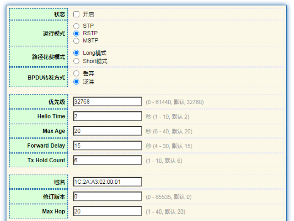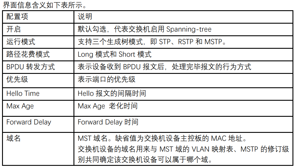 【产品教程】2026.04.15 盒式交换机(千兆) 生成树协议-功能设置 提供配置 STP 全局参数的功能,在一些特定的网络环境里,需要调整部分设备的 STP参数,以便达到最佳的效果。 操作步骤: 1、单击导航树中的“生成树协议 > 功能设置”菜单,进入生成树协议配置界面,如下图所示:   2、填写相应的配置项。单击“应用”,完成配置
