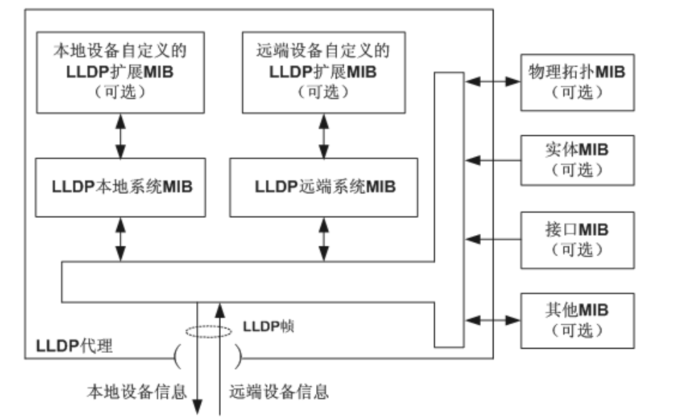 【产品教程】2026.04.15 盒式交换机(千兆) 拓扑发现-基本概念 LLDP(Link Layer Discovery Protocol)是 IEEE 802.1ab 中定义的链路层发现协议。LLDP是一种标准的二层发现方式,可以将本端设备的管理地址、设备标识、接口标识等信息组织起来,并发布给自己的邻居设备,邻居设备收到这些信息后将其以标准的管理信息库 MIB(Management Information Base)的形式保存起来,以供网络管理系统查询及判断链路的通信状况。 LLDP 可以将本地设备的信息组织起来并发布给自己的远端设备,本地设备将收到的远端设备信息以标准 MIB 的形式保存起来。工作原理如下图所示。LLDP 原理框图  LLDP 基本实现原理为: ⚫ LLDP 模块通过 LLDP 代理与设备上物理拓扑 MIB、实体 MIB、接口 MIB 以及其他类型MIB 的交互,来更新自己的 LLDP 本地系统 MIB,以及本地设备自定义的 LLDP 扩展 MIB。 ⚫ 将本地设备信息封装成 LLDP 帧发送给远端设备。 ⚫ 接收远端设备发过来的 LLDP 帧,更新自己的 LLDP 远端系统 MIB,以及远端设备自定义的 LLDP 扩展 MIB。 ⚫ 通过 LLDP 代理收发 LLDP 帧,设备就很清楚地知道远端设备的信息,包括连接的是远端设备的哪个接口、远端设备的 MAC 地址等信息。 ⚫ LLDP 本地系统 MIB 用来保存本地设备信息。包括设备 ID、接口 ID、系统名称、系统描述、接口描述、网络管理地址等信息。 ⚫ LLDP 远端系统 MIB 用来保存远端设备信息。包括设备 ID、接口 ID、系统名称、系统描述、接口描述、网络管理地址等信息。 ⚫ LLDP-MED 以 LLDP 为基础, 其它组织可以通过 LLDP-MED 对其进行扩展。从网络设备查明的信息,可以帮助进行故障分析 并允许管理系统准确地了解网络拓扑结构。