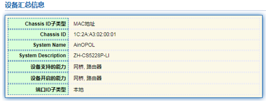 【产品教程】2026.04.15 盒式交换机(千兆) 拓扑发现-本设备信息 操作步骤: 1、单击导航树中的“拓扑发现 > LLDP > 本设备信息”菜单进入界面,如下图所示:  2、在端口状态表中选择端口,点击“详情”,可以查看端口发送的 LLDP 消息详细信息,如83下图所示: