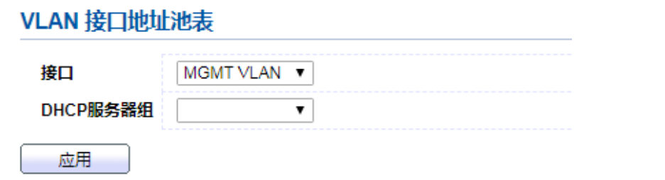 【产品教程】2026.04.15 盒式交换机(千兆) DHCP-VLAN 接口地址组配置 DHCP 服务器组和接口关系配置 操作步骤: 1、单击导航树中的“DHCP > VLAN 接口地址组配置”菜单进入 DHCP 服务器组表界面,单击“添加”进入服务器组配置,如下图所示:   2、在 VLAN 接口地址池表中选择 VLAN 接口和 DHCP 服务器组,点击“应用”完成绑定关系,如下图所示: